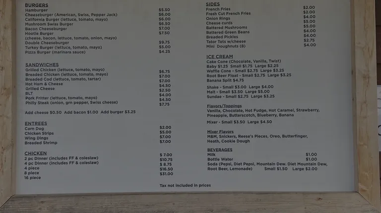 Excellent homemade food! Fresh cut French fries, burgers, fried chicken, chili dogs and shakes/ice cream were enjoyed by our family. Good price for the quality!!