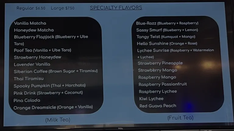 Yummy tea and boba drinks! I noticed there isn't a menu online so I thought I'd post it here. Cute shop!