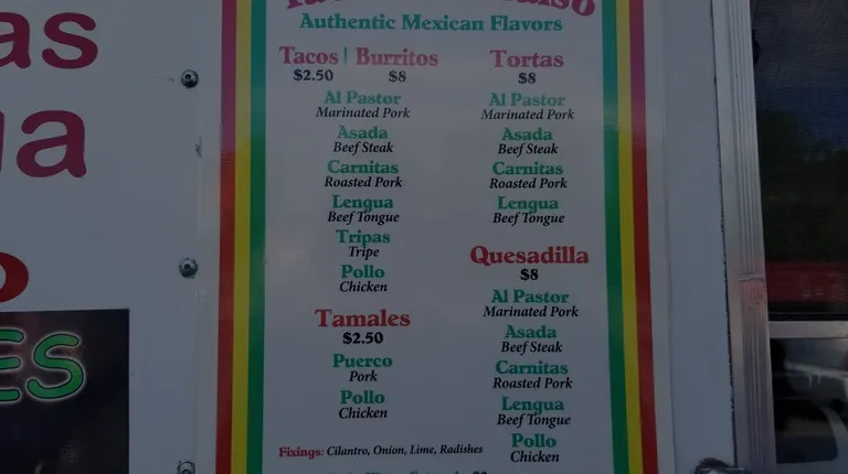 a menu on a food truck