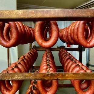 a bunch of sausages on a cutting board