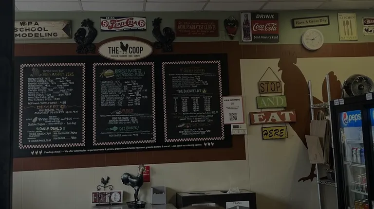 Yummmmm we had carryout for dinner from The Coop. They had a steady stream of customers and we had no questions why. The chicken was cooked fresh so we had to wait. No worries they have outdoor seating and it was a beautiful evening. Our order was ready after about a 25 minute wait.It was well worth the wait!!!The food was still nice and hot when we got home The chicken was very flavorful (not salty) and very crunchy. The potato wedges were soooooo good. I was sad that I did not order an extra side of them. Tip: Call ahead to place order if the weather isn't beautiful!!! Enjoy