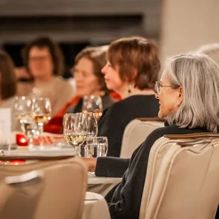 I had the most exquisite dinner at The Woman's Club last night. I was there for a business dinner in a private room (I'm told the pricing was very reasonable) that had a beautiful view overlooking the lake. The room had ornate woodwork and a fireplace. The atmosphere was very classic. My dinner was sea bass on corn risotto with pistachios and fresh snap peas. As I was eating my dinner the word exquisite kept repeating in my head like a mantra. Everyone at the table was remarking on how good their food was, too. I didn't think there could be anything special about shrimp fried rice, but I've got to say it looked impressive from across the table! A few of us at the table ordered the almond cake with strawberry sauce for dessert and it also was beyond expectations. Also, a plus for the parking lot. I am knocking off a star for mediocre service and scarcity on the bread. Service: It didn't seem like the waitstaff was trained in service... they didn't seem to know when to pull dirty dishes away, the food came in and they didn't know who had ordered what, coffee took over 30 minutes to arrive and I had to ask for it multiple times, thought that we had ordered desserts when we hadn't yet, etc.Bread: We received one small basket of bread for a group of 7 and it took a while to get a refill after asked- but the bread itself was fresh baked and warm served with spreadable temperature butter.