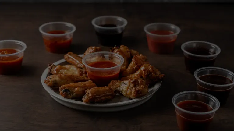 three different sauces in a styrofoam container