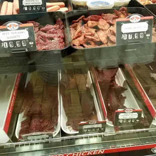 A lot of my friends have recommended this location for meats and jerky. I stopped in to meet someone and he was getting pork chops and said they were great and I ended up going with another recommendation of the beef jerky behind the front counter. I tried a the teryaki and garlic cracked pepper and both were good and the staff was great and told me how to preserve it longer so I can enjoy it for a while.