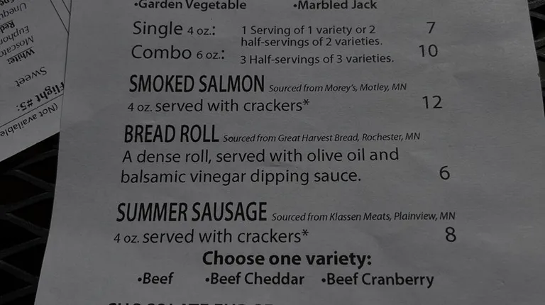 Of course you need to stop at a winery while you're out camping. :-) A group of 7 of us visited on a fall afternoon and had a lovely time! There's plenty of outdoor seating among gorgeous gardens or indoor seating if the weather drives you inside. There's a wide variety of wines to choose from with make-your-own and set flights which they'll bring out to your table. I had a glass of Minnesota Summer (raspberry/rhubarb sparkling wine) plus bought a bottle to bring home. All the others in my group had flights that come with six tastings. If you'd like a nibble with your wine, there's a small menu of local cheeses, meats and snacks. Two in my group had the bread with olive oil and balsamic vinegar. I'm surprised they didn't pick up the plate to lick it afterwards (although they did mop up the leftover oil with oyster crackers). The service was spot on! There are wood blocks on the table to indicate when you'd like your next tasting poured or to order food. It makes for a very relaxing visit not craning your neck trying to get a server's attention or waiting at a bar for a spot to open up. Tip: bring your wine passport and get $8 off a tasting or glass of wine!