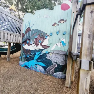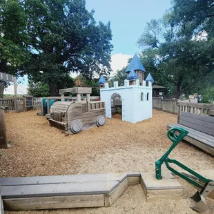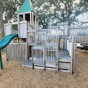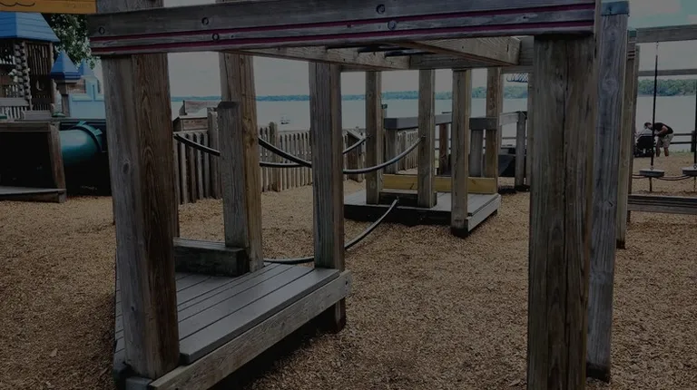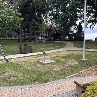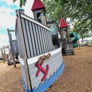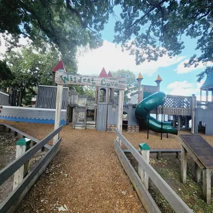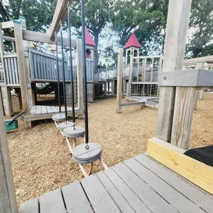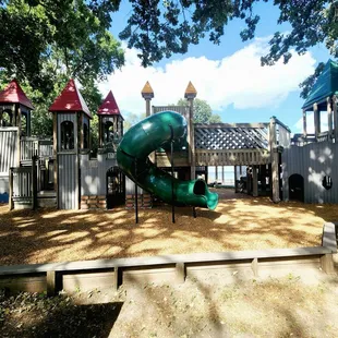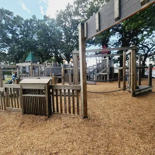 Fantastic park right off the lake. Wood structures with plenty of areas for play - even for the younger children. A pavilion nearby, plenty of swings. Such a wonderful variety with balance beams and climbing walls. Nooks to hids. Play boat or castle....or dig in the sand and look out at the lake. Just beautiful. The only bad part is the city need to wipe the spider webs off more.