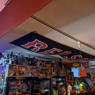 I had seen this place while shopping across the street. Red Sox banner, looks small from the outside. Walked in and it took a sec for my eyes to adjust. It's pretty dark in here. Couple of other patrons on one end of the bar, tvs on sports. I was greeted by a cheery, funny lady behind the bar, very friendly. She mentioned how dark it was in the bar, and the beer was as cold as it was dark in here. The beer IS cold, decent price. There is Red Sox memorabilia all around, and coincidentally, a Red Sox game on tv. The bartender had a big jar on the bar with peppers in it, said it was filled with vodka, for bloody marys on Sunday before the Saints game. Pretty cool. Bathroom is decent, couple of tables and a back roomIts ok.