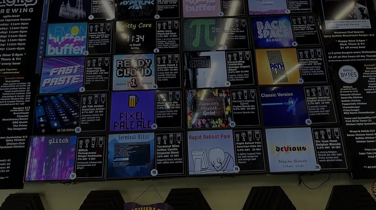 This is a great place for beer lovers and there are some things for non-beer lovers too. With a minimum of 20 different beers on tap at any one time, it's a GREAT place to get a beer-ducation! From lighter lagers, attainable ambers, to yeasty Belgians, to darker browns and stouts, all the way to the various IPAs from coast to coast, and their trendy sours and seltzers, you can find any style that suits your tastes! Also, if you're overwhelmed with the selection, there are 20-sided dice at the bar to let random selection occur for you! Staff is friendly and they're also there to help you decide, being knowledgeable about the brews.But don't forget the food truck outside! BREW BYTES BISTRO has excellent American pub food and burgers for you to choose from! Agile holds events and specials pretty much all week long and they have expanded their hours to seven days a week at the time I'm writing this--so there's always a good time to come try it out!