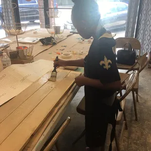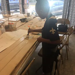 We had a blast! Our mommy and me date was so much fun here. I've been meaning to visit for quite some time as I've wanted a porch welcome sign so I opted to visit during a walk in day on a Sunday. The owners were very personable and helped us tremendously with our art going over every detail step by step. The prices were affordable to me and were based upon the piece you chose. I would highly recommend and plan to visit again. Thanks for your hospitality.