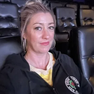 This theater is Ok. We were visiting from Texas, and our hotel was just across the parking lot, so we decided to pop in for a movie. The theater was pretty basic. We happened to get a theater with reclining seats, but my sister's seat was broken. Some of the chairs were ripped and looked like they needed replacing. My seat was pretty comfortable though. The theater also looked like it could have been cleaned better, as there were leftover popcorn and candy pieces on the floor from the previous show. I do like that the screen seemed quite big! Overall, it's not the best theater, but it serves its purpose.