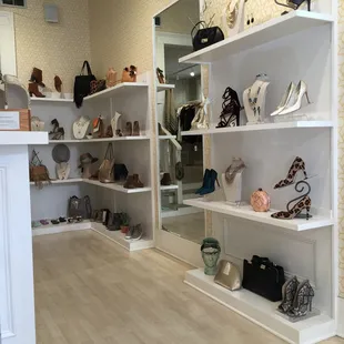 Cute selection of upscale shoes (and even in my baby feet size!) and handbags. The sales person was helpful without being pushy and actually seemed occupied by store tasks rather than her cellphone! The costume jewelry and other accessories were fun too. Also, this one of the locations where you can check out Dominque Giordano's creations in person since her shop across the street is shut down.
