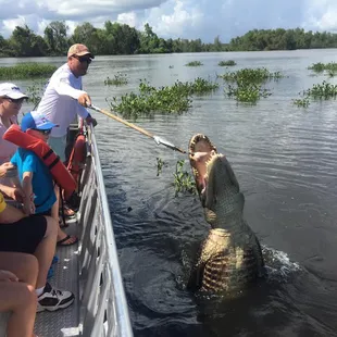 I was in awe to see alligators come to our boat because Mr. Jimmy our tour guide would called them by NAME!!! Wow!! The rain was awful this morning and we thought that our swamp tour might be canceled but it all cleared up. We were able to enjoy a beautiful ride thru amazing views and got to meet about eight alligators Mr. Jimmy called by name. They came over to our boat to get fed and pose for awesome pictures. I didn't expect to come out so relax after this 2 hour ride. But it was a perfect day for this. It was overcast and a cool breeze running thru.We paid $25 dollars per person and made our reservation a week in advice. You need sun block, a hat and sunglasses. I loved every minute of it!!! I recommend everyone who is visiting New Orleans to drive to Houma and take a relaxing boat ride.