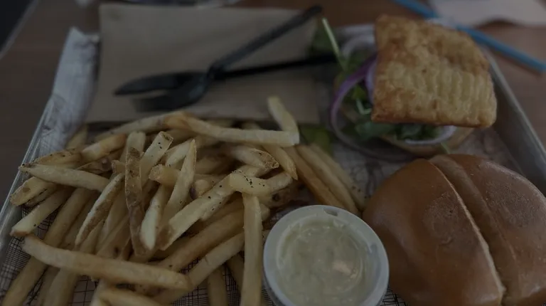 We were catching a Southwest flight home to Las Vegas, but had a little bit of time. We tried to sit at the bar, but the bar patrons definitely use up stools to put their bags on so we had no choice but to sit at one of the tables. The tables are Community seating with chargers for your electronics. Hopefully management sees this, and maybe tries to do something about freeing up the barstools from being luggage racks.Our waitress was very friendly and fast. We had a few cocktails. My spouse had the gumbo, which he said was very good. I had the shrimp basket. I was expecting an appetizer portion because of the low price, but was very pleasantly surprised when a full meal of fried shrimp, and french fries came out. The shrimp were fried, but very light. The french fries were insanely good. My spouse actually said it was the best french fries he has ever had.
