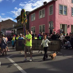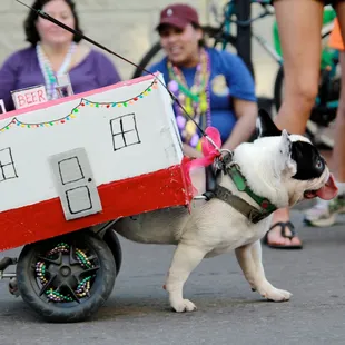 Dogs on parade what's not to love. It's one of my favorite parades so many cute fuzzy dogs dolled up walking or riding their way through the quarter. None motorized little floats be pushed in carts or pulled by bikes or even pups themselves. And of course they motor themselves on all 4s ...how can you not smile. Such a fun event and it doesn't stop with the parade. The quarter comes alive with dogs in bars dogs and out every inch of the quarter. So fun to see all the pets and their owners coming together and enjoying Mardi Gras. BARK BARK BARK BARK BARK. that's 5 barks from me!
