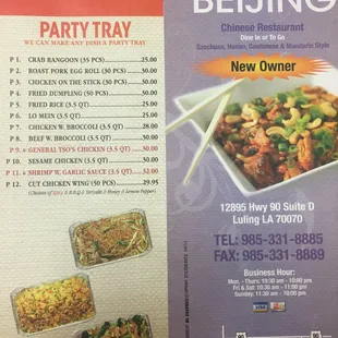 Catering Party Tray Menu