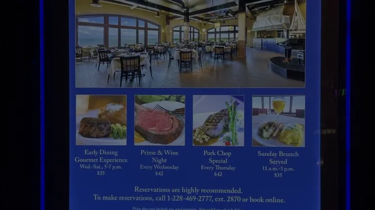 We stopped by the Sliver Slipper Casino for a few spins. Got hungry and went to Blue Bayou Bar and Grill because the line for the buffet was wrapped around the casino... literally! Waited for an hour to be seated for 2... When you walk in it is dimly lit and FREEZING COLD... The temperature is so uncomfortable that it makes it hard to focus on your dinner selections!!! After three cups of coffee I can now focus on ordering.. Taylor was our server and he was a ANGELIC he gave us the specials of the day and immediately I wanted it just from his description... It was my all time favorite Trout Almondine!!! And we had a rack of lamb with garlic mashed potatoes! Once again blindsided by the fidget temperature I was unable to fully enjoy my experience... However the room is not very large but there is a spectacular view of the Bay... It made me feel like I was on a cruise (An Alaskan Cruise but a cruise). It was more of a pier like setting. The staff was amazingly attentive a great place for dinner and a conversation! Once the food arrive it looked mouthwatering!! Looked so good made me wanna slap my mama( oh but I'm glad I didn't). When they say looks are deceiving the really are because the food was extremely bland and flavorless!! However the presentation was magnificent! The fish was definitely fresh and flakey and the lamb was seared on the outside and cooked to perfection on the inside with a very little pink! Perfect! However it lacked the flavor! When I think of a fine fine experience at a Casino I think of Phillip M's at the Silver Star Casino in Philadelphia MS! So we were expecting the same type of experience... Boy oh boy were we in for a surprise... I was very disappointed. If you visit you definitely need an COAT! Expect phenomenal service and nasty food!! The service gets a 5 the food gets a 2! The second visit was much better than the first. The food was better... The serve was better... Joel was an AMAZING server!