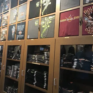I stopped in twice to the Bourbon Street Harley-Davidson and made purchases both times. It's a small dingy store but I love how they display their shirts front and back. You don't have to pull every shirt that you think you may like out to examine it. Once you find the shirt that you like you just open the case to grab your size. Everything stays nice and neat. The inventory for women and children was sorely lacking but I did find what I was looking for. I would have purchased more if it was available especially in the kids area. The staff was friendly and were quick to make suggestions. They engage with their customers making the shopping experience more personal.