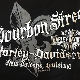 Being from Atlanta, and visiting New Orleans, the last thing I really want is a "new orleans" souvenir. LETS GO FALCONS!!!!So while everyone else is filling up on fishbowls and hand grenades, I took a stroll inside this shop to get me a true Bourbon Street souvenir.I don't ride motorcycles, but know when it comes to Harley Davidson, you can't go wrong, so I was pretty excited that nearly all the t-shirts had Bourbon Street somewhere on it, so that made it a true souvenir, without having to be too touristyThe t shirts range in price from about $30-$60 and while I wouldn't call the staff friendly or helpful, once I was ready to check out, two people were ready to assist me.Worth a look, if you want a Bourbon Street souvenir and don't mind it being Harley Davidson related.