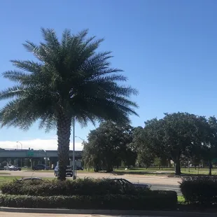 a palm tree in front of the building
