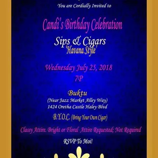 What a nice place for an event or just to hang out after a looooong work week or equally looooooong day. Totally off the beaten path. I passed it up the first time looking for it, as it sits off the street abt 50 feet, so passing it by is a definite possibility. The crowd initially was sparse, but soon picked up as the night grew on. The speciality drinks seemed appropriately themed for the location & the prices were good as well. The bartenders were very friendly & attentive. I was here for a party for my good, good friend Candi, but I'm told this is also a venue that can be rented out. I also hear this was a happening place during Essence Fest 2018 & understandably so as it's simply PERFECT. One of 2 overflow areas is adorned with over-sized Connect-Four games & other over-sized games for your entertainment. This night I was there a cigar guy was there rolling FRESH cigars BY-HAND!!! How sweet!!!! The other overflow area has a grassy lot with benched-seats for your pleasure. It's a little haven of sorts, definitely a breath of fresh air. I'll definitely visit again and have even logged this place in my head for a venue to host a soiree!!!
