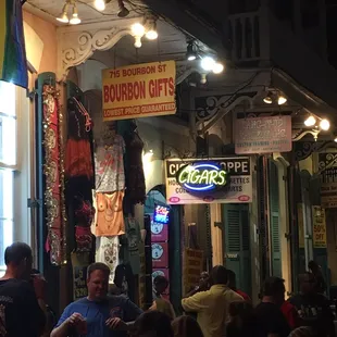 I stopped by this shop during a recent trip to New Orleans in the French Quarter. All of the staff was very nice and helpful with all of my group's questions. You have to realize this business gets a lot of foot traffic of tourists coming from everywhere - day and night. I'm certain they get everything from highly inebriated patrons, disruptive people, and super nice folks coming through the doors. However, both of clerks were so nice. One even nice came from around the counter to help us go through the t-shirt selection while picking out souvenirs to take home to friends. 715 bourbon gifts has the usual items for visitors, including the following:-T-shirts and miscellaneous clothing - Glassware (from shot glasses to pint mugs)-Local guides and maps-Keychains- And a lot moreI highly recommend stopping by if you are in the area. The hospitality is pretty darn good and the inventory has plenty of items :)