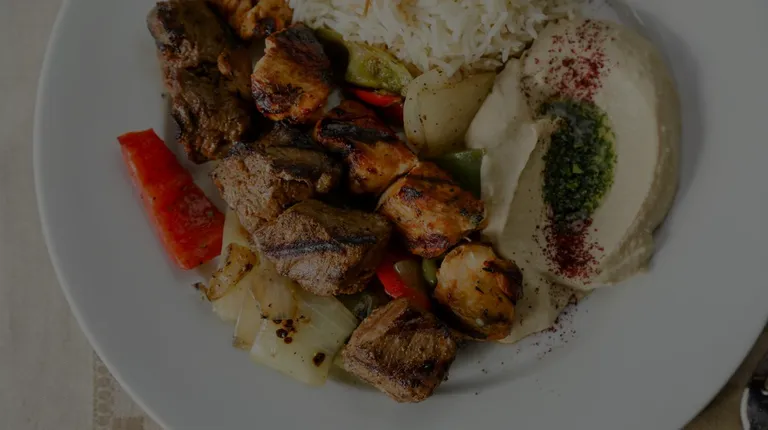 The food was good but I didn't really love the ambiance of the restaurant. The tables are all really close and it was really cold. I got the chicken and beef skewers which were tender and juicy. We also started off with hummus and bacon wrapped shrimp which were both pretty good.
