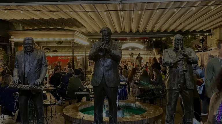 a group of statues of musicians