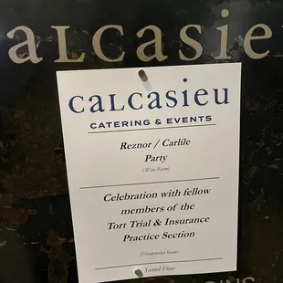 Was lucky enough to go to Calcasieu for the Rehearsal Dinner for my nephew's wedding and I was impressed. Located above Cochon is the private event center with some of the best food I have encountered at a catered meal. We were in the smaller wine room which was beautifully setup. We started with appetizers that included the best fried oysters I have had, crisp on the outside, slightly salty and delicious on the inside. We also had several other delicious apps. The plated dishes were also incredibly good, with the main course of sauteed gulf fish perfectly cooked and expertly seasoned.I do have to shout out the service, I am a Pescetarian and another person at the table had other dietary restrictions. The servers and the kitchen handled these with special dishes as necessary and more smoothly then I have ever experienced. This is a truly exceptional place to have a party or event, you get great food, expert service and a great venue. A great pick.