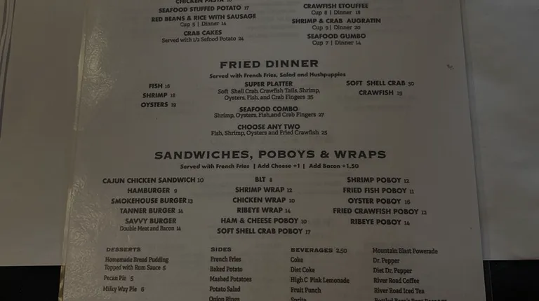 I've been here many times and it is hit or miss. During crawfish season this place is great, but that's the only thing that deserves 5 stars. This place has been around forever. There aren't many choices around here so Im sure I will be back. On this we arrived around 5pn and were told to seat wherever we wanted. The waitress was friendly and quickly took our ordered and returned with our drinks. I chose the crab meat augratin. It was quite possibly the worst thing I've ever tasted. It was mostly lumpy floury goop. I looked for the crab but couldn't find much. Never again will I order this ... It was horrible. My fiance ordered a fried fish poboy and he enjoyed it. Maybe next time I'll get a sandwich.