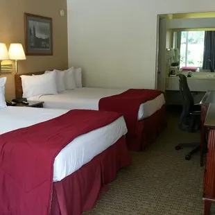 I had a pleasant experience. Exception the AC in my room wasn't running like it should and we were all hot. I slept with only a sheet. We brought our own big screen tv to watch the LSU game by the pool and they were very rude n called the police who told us we had to leave the pool area with our tv. Ironic cuz they had two other couples who were NOT with our party who seemed to dry humping one another in front of everyone including our kids and they were allowed to stay. After we vacated the pool area the two couples were definitely having sex in the pool ! We stayed there for a baseball tournament. Breakfast ... you are not allowed to serve yourself. They will come to you n take your order then bring you your powdered eggs. The restaurant looked fantastic but we didn't have the chance to try it out. The front desk staff allowed me to have an early check in since I was checking in with my service dog. That was very nice of them.