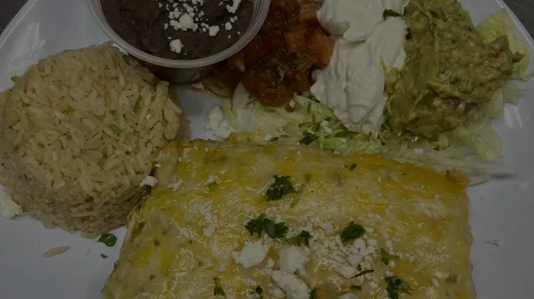 Daily Special: Salsa Verde Chicken Enchiladas w/ Rice and Black Beans