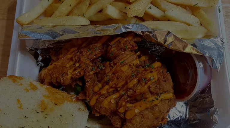 During the 2020 pandemic I've been sampling a variety of fried chicken sandwiches. I saw Chef Nat's Kitchen advertising on Facebook and decided that I needed to try it. I'd never heard of them before, and when I went looking to order there wasn't much information. The primary ways of ordering were Uber Eats and DoorDash. Deciding that I didn't want to pay a delivery fee, I opted for pickup and was given the address of a house.Turns out that Chef Nat's Kitchen is literally Chef Nat cooking in his kitchen. LOL, can't say he did any false advertising in that regard! I didn't actually go in his house to pickup, but he seemed to have a good set up from what little I saw. The carport was fenced in with some seating and a little "Open" sign on the carport fence. He did also have a "Chef Nat's Kitchen" banner on the house, so you knew you were approaching the right house. There was an empty lot diagonally across the street, so it was easy to park out of the way.Chef Nat was very friendly. I asked permission to add him to Yelp - I felt I had to ask first due to his setup - and he quickly agreed. He also said he appreciated feedback, which seemed to be true; more later.The fries and sandwich were good. I usually find white fries boring and avoid them, but these had enough seasoning on them to give them a little interest. The piece of chicken was huge, hanging off both sides of the bun, and was topped with a sauce that had a nice little kick to it. The thicker sections were maybe a smidge dry, but in that "white meat chicken" type of way. The only criticism I had was the bun - it couldn't handle the awesomeness of the chicken - and Chef Nat said he'd look into it when I mentioned it to him.Overall it was good food and a small, friendly, black-owned business. Chef Nat said he'll be getting a brick-and-mortar store and I'll be looking forward to it.