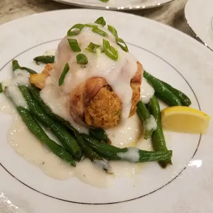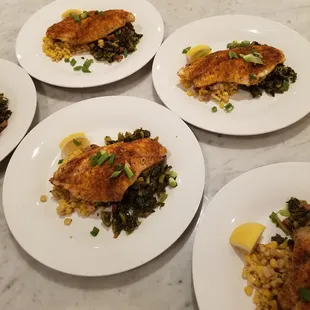 Dinner for 8 - Entree. Bronzed Redfish over Corn Maque Choux with Smothered Green Beans