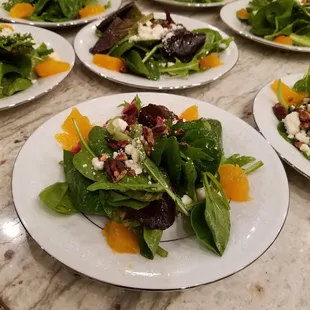Cane Fields Salad - baby greens, red onion, feta cheese, orange supremes, toasted pecans, and our housemade Sugarcane Vinaigrette.