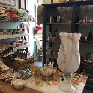 Really charming store that is much larger inside than it would appear from the street. They had a great sale room in the back (Yay early Christmas shopping). They have a great selection of home decorator items (think wedding presents) and jewelry and loved the showcase of local art.The staff was great and helpful without being pushy. The store is full of merchandise but really well laid out so there's tons to look at. Be aware if you're on a Saturday jaunt like I was, that they close at 2pm