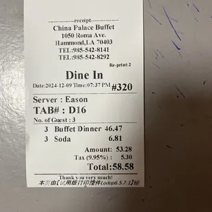 Great service never let glasses get empty and plates never left on table. Fresh servings of hot good food. Looks like a normal Chinese buffet.