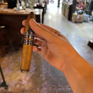 Friendly staff, good cigars. I had the Brazilian leaf Connecticut wrapper Lancero. Very nice, good flavor, smooth as a Lancero should be.
