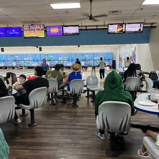 We decided to give this little place a try. From the outside, it didn't look like much. A little plain building, which I nearly passed up. But it did turned out to be packed with little surprises.Upon entering the business, I noticed that the lights were dimmed, and that there were laser lights twirling around, and disco balls were on the celling. It gave an almost cosmic feel. My daughter really enjoyed that because people could watch her shoes light up as she pranced around. They played music over the intercom/speakers, which helped set up an enjoyable atmosphere. I believe that the cosmic lights are available until 5pm. Then the regular lights are tuned on.Colonial Bowling Lanes isn't as big as other bowing alley's I have been to in the past. It has 24 Lanes, but they are pretty up to date with tech. You can choose different types of game setups, screen backgrounds, and animations. I could even set the lanes to automatically bring up and lower the lane bumpers for myself, I mean my kids, yeah kids need those. I really didn't have the time to dive deep into the capabilities, but found it pretty impressive. The staff was very nice and professional. When any customer had an issue with a ball not returning, or anything that normally goes wrong at a Bowling Alley. They were quick to respond. They made you feel as though, your problem, was their problem. When a group or a person was done with their area. They would hurry and and clean, as well as sanitize that area.Colonial Lanes also has a bowling shop, a few arcade games, and a full menu. And when I say a full menu, I mean A FULL MENU. You can order anything from from fried to grill chicken. To hamburgers, nachos, pizzas, and hot sausage po-boys. Philly's, salads, catfish, and even breakfast. If you are in the area, check out this little hometown gem. They have reasonable prices on lanes, and also offer birthday party packages.