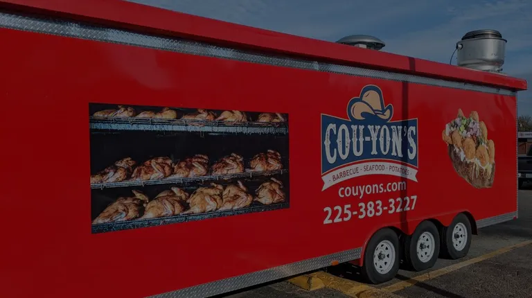 For any BR people who want to avoid crossing the bridge over to Port Allen to get the real thing (#1), the next best thing is to rock the food truck version that offers an express version of their condensed menu. Located next to Crawfish on the Geaux (#2) and in the parking lot of a strip mall. While I don't think the food here is better than the mothership, but they can definitely hold their own.I've been here ... a lot. (#3) A guaranteed item I'll always get is their loaded baked potato, preferably with turkey or chicken. It's caked with cheese, bacon, sour cream and with a number of fixins that make it one of the most epic meals from a food truck I've had. In terms of meats, I like the turkey and sausage with a side of their cajun rice + mac and cheese. The three meat plate is the way to go for me.I am not overly fond of their crawfish etoufée and find their loaded fries to be underwhelming. Family Pack is good but at $60 it's definitely kind of pricey. I would also avoid their food truck tacos and/or fried shrimp. I think sticking to their sides and main meats is the way to go.Service has always been good and things are served fairly quickly. If there is a wait / lines, they disappear pretty fast. Parking can be a little tricky, but there's always more spaces in the back. Lastly, they take credit cards and are strictly takeout only. ____________(#1) Couyon's, the original location: https://www.yelp.com/biz/cou-yons-cajun-bar-b-q-port-allen-3(#2) Geaux .... Crawfish! https://www.yelp.com/biz/crawfish-on-the-geaux-baton-rouge(#3) I totally didn't just populate most of their gallery did I? https://www.yelp.com/biz_photos/OKx2U03F6bS_IERtGzP--w