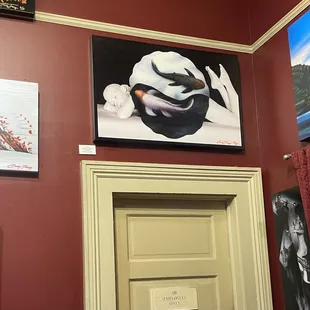 The art work here is phenomenal and definitely a must see. I was soaking up the last hours of my trip today and staggered upon this gallery. I don't think that I have the words to do it justice, this is something that you must see for yourself. A full gallery of photographs of art on human bodies.I would love to commission a piece of my own. I inquired about it, however, I am not necessarily pleased with the response that I received. I feel as though I may have been dismissed as...I don't know...someone not seriously willing or able to do a commissioned piece. The guy (not the Artist) just kept going on and on about the prints for sale, how they aren't about the people (the volunteers) in them and how the Artist rarely does commissions. Hmmm. What could be more lovely than owning a piece that has special meaning for the owner? Never mind the fact that while he is saying these (nonsense) things to me, a customer was there waiting to get started with her commissioned piece. Again, hmmm.The sheer beauty of the work is worth the visit, this is why I give it a 4. The artwork itself deserves a 10. However, I didn't leave with a warm fuzzy feeling about following up on what I would really want to purchase based on this interaction. That is why I didn't give it a 5.