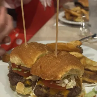 The fries are excellent. The rest is described below...Kind servers, although very slow service from the drinks, to the dinner, to the dessert (ice cream shakes)."A step above McDonalds" (38 year old), and "fine" (7 year old) best describe what is going on here. The burgers lack salt, which makes their 10+ options of toppings surprisingly similar. We tried the sliders, the soprano, the desk and the jazz. Every one looked different, and tasted similarly.The televisions make this more of a sports bar than a restaurant. A very unmemorable experience overall. Unfortunately the cost is memorable.
