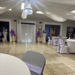 I attended a Quinceanera at this venue and was pleasantly surprised by its size, location and decor.It could easily accommodate a few hundred people standing and approximately 200 with tables and chairs. For the party, there was plenty of space for tables, a food area, fruit table, dessert table and photo booth without crowding the DJ's space. There's also a pool table in a rear room. Pros: location, size, layout and lighting. Cons: Temperature in warmer weather, bar service I deducted a star because it was stuffy/AC wasn't ideal for its size with a smaller group of people. The other less than ideal aspect was the bar. The bartender didn't know how to make a rum punch and didn't have flavors for it. For gin, there was no tonic. Certain mixers should be standard with a hall serving adult beverages. If you're looking to host a bridal shower, baby shower, birthday party or reception in the Kenner area, this is a good find.