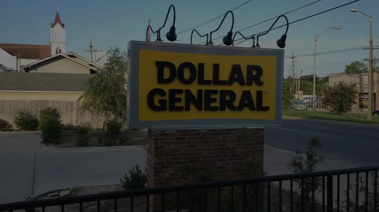 cars parked in front of a dollar general store