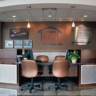 Elmwood Self Storage and Wine Cellar office. Stop in for a cup of coffee or bottle of water.