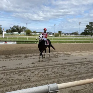 A jockey after his race....the track was super muddy after the heavy rains today.