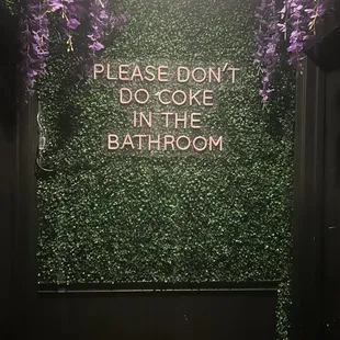 a neon sign that says please don't do coke in the bathroom
