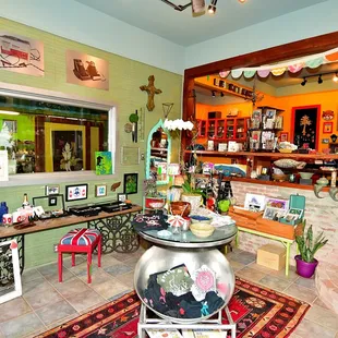 This little gem of a store contains the coolest art work in the guise of pillows, clothes, postcards, earrings, soap, etc... The owner is fun and easy to talk to. I like to visit this store on my lunch break if I am having a tough day at work! It always brightens my mood. I am so glad I discovered such an eclectic shop that is not on Magazine Street.