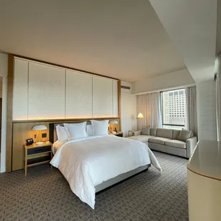 Bed was good but was so flimsy on the edges if you sat in it you'd slide off. The sofa in the suite was stained.