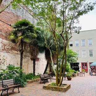 Magnolia and sitting areas in the courtyard.