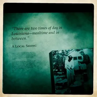 This National Historic Park and Nature Preserve visitor center, named after pirate Jean Lafitte, is a respite of tranquility, and also has informative displays. The Visitor Center has a beautiful little courtyard with a huge Magnolia tree, other flora, fountains, informational signs about the history of the area, and also clean bathrooms. The visitor's center has information on the flora and peoples that settled in the area, and I can't wait to get back and listen to the recordings of their language, their music, their customs. There's also a gift shop with New Orleans history, cookbooks, etc. that one doesn't always find in the tourist shops. This National Park and Preserve visitor center was one of my favorite finds on my recent trip, and I look forward to heading out to the swamp/National Park as well on future visits.